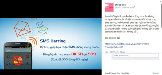 Nếu bạn đã từng bị những tin nhắc rác khủng bố thì dịch vụ SMS Barring mà MobiFone vừa giới thiệu sẽ cực kỳ hữu ích. Đây là dịch vụ giúp thuê bao MobiFone đang hoạt động 2 chiều chặn các tin nhắn đến từ một hoặc nhiều số thuê bao với cước thuê bao dịch vụ chỉ 5.000 đồng trong 30 ngày.