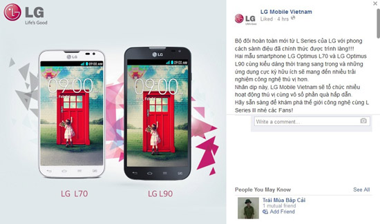 Hôm nay LG thông báo bộ đôi smartphone mới thế hệ thứ 3 của dòng Optimus L đã chính thức ra mắt, đó là mẫu Optimus L70 và Optimus L90. Để chào đón 2 mẫu smartphone này, LG khẳng định sẽ tổ chức nhiều hoạt động thú vị cùng vô số phần quà hấp dẫn.