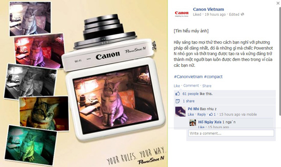 Hôm nay bạn sẽ được ngắm nhìn vẻ đẹp nhỏ gọn của chiếc máy ảnh Canon PowerShot N, sản phẩm hợp thời trang được tạo ra để vừa vặn với ví của các bạn nữ. Hiện nay Canon cũng mới cho ra đời thêm PowerShot N100, đời kế cận của PowerShot N.