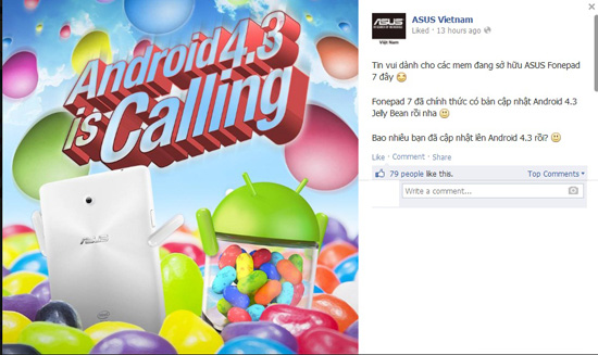 ASUS thông báo tin vui rằng chiếc ASUS Fonepad 7 đã chính thức có bản cập nhật lên hệ điều hành Android 4.3 Jelly Bean.
