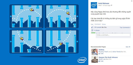 Một ý tưởng khá độc đáo trong ngày Valentine của Intel là khi đường bay của chú chim Flappy Bird ghép được thành biểu tượng hình trái tim.