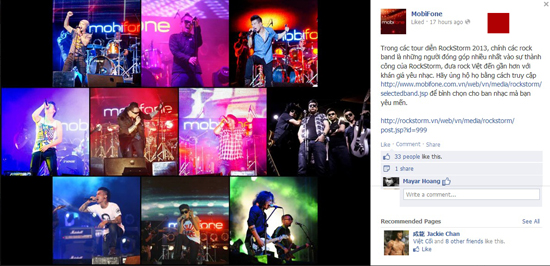 RockStorm 2013 đã khép lại sau buổi trình diễn ở Hà Nội và MobiFone trao cơ hội cho các rock fan để bình chọn ra ban nhạc mà họ yêu thích nhất. Theo những con số thì ban nhạc đang dẫn đầu là Black Infinity với hơn 5,5 triệu lượt like, xếp thứ hai là Ngũ Cung với hơn 160.000 lượt.