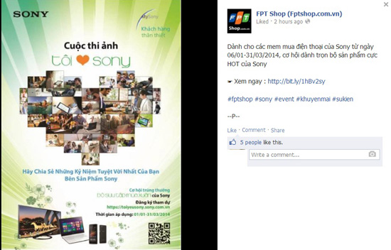 FPT Shop đang tổ chức cuộc thi ảnh “Tôi yêu Sony”, dành cho những ai mua các đời máy dòng Xperia của Sony và đặc biệt là Xperia Z Ultra. Không chỉ được kích hoạt gói bảo vệ toàn diện (trong trường hợp rơi vào nước...) 1 năm, người mua Z Ultra còn có cơ hội mang về “