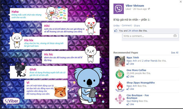 Trong phần 1 của bài “Bí kíp giải mã tin nhắn”, Viber đã giúp các fan hay sử dụng ứng dụng hiểu rõ hơn ý nghĩa đằng sau 5 biểu tượng. Ví dụ, biểu tượng “Haha” được dùng khi không mắc cười chút nào nhưng cười cho vui, còn biểu tượng “Hihi” là cười cho có lệ, dành cho con gái đang ra vẻ dễ thương với các đối tượng cưa cẩm.