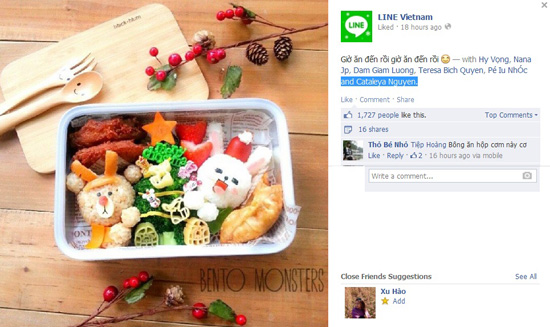 Ai cũng ấn tượng và thích thú với hộp cơm theo phong cách bento của Nhật, trong đó tạo hình 2 nhân vật biểu trưng của ứng dụng LINE là gấu Brown và gấu Cony.