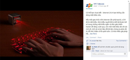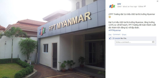Trên Facebook những ngày này, FPT thường xuyên thông báo những thành tích ấn tượng trong năm 2013. Chẳng hạn, chi nhánh FPT Trading tại thị trường Myanmar đã đạt doanh sô 5,6 triệu USD trong năm qua, tăng trưởng 123% so với kế hoạch. Trước đó, FPT IS FSE thông báo đạt doanh số 1.003 tỷ đồng, hoàn thành 130% kế hoạch năm.