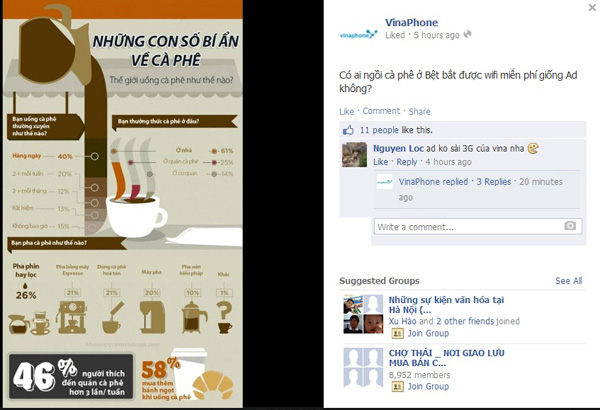 Hôm nay, VinaPhone có nhã hứng chia sẻ những con số thú vị về cà phê. Có thể bạn chưa biết rằng 61% số người uống cà phê ở nhà, 25% ở quán cà phê và chỉ 14% ở cơ quan. Hoặc 26% số người thường uống cà phê pha phin, 21% dùng cà phê hòa tan và 21% pha bằng máy Expresso…