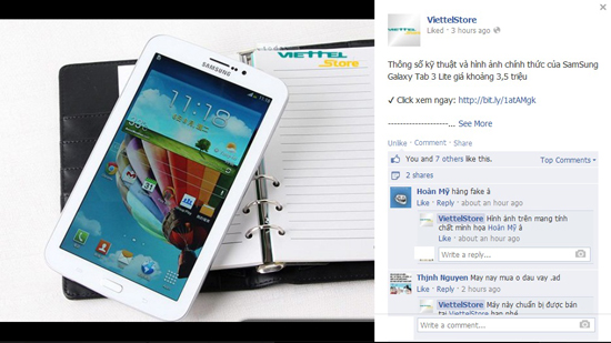 Rất nhanh, ViettelStore đã chia sẻ hình ảnh và thông số của mẫu máy tính bảng tầm trung Samsung Galaxy Tab 3 Lite mới được công bố trên toàn thế giới. Galaxy Tab 3 Lite được trang bị màn hình 7 inch, vi xử lý 2 nhân, chạy hệ điều hành Android 4.2, pin 3.600 mAh và có một camera sau 2 MP.