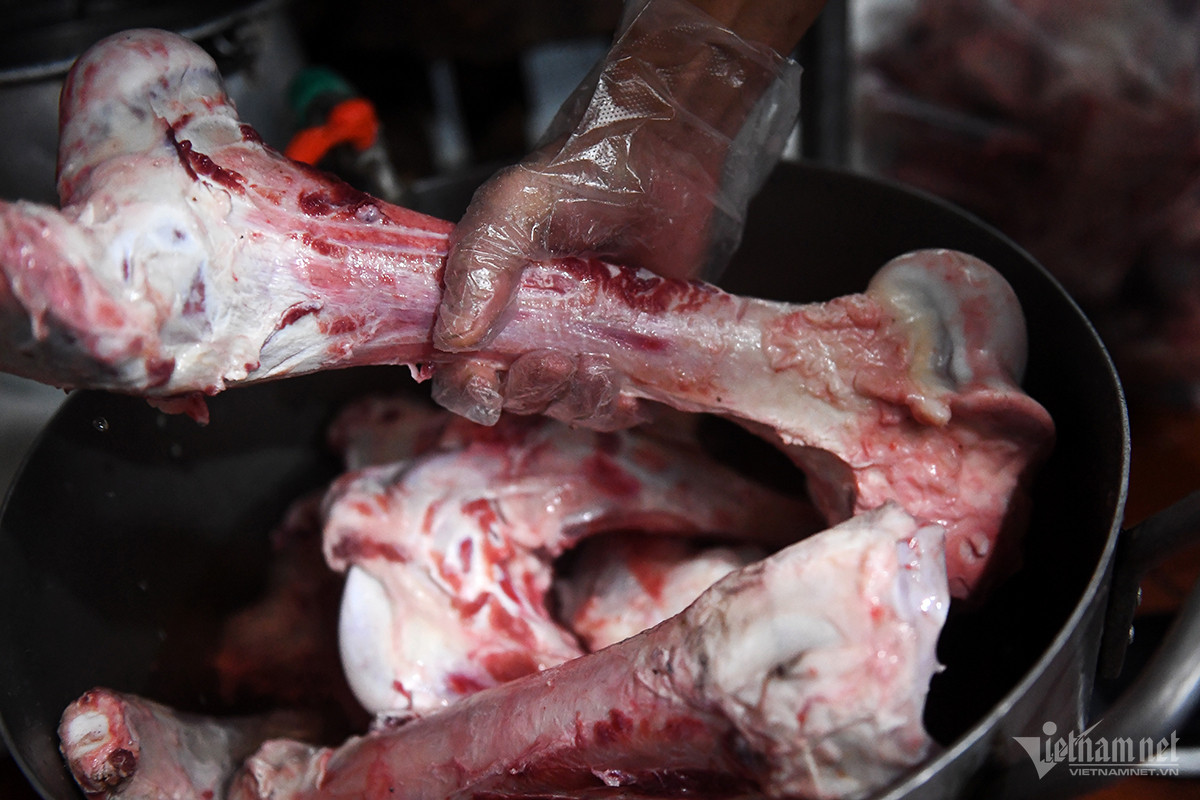 Anh Tuyên tâm sự, linh hồn của phở Nam Định nằm ở nồi nước dùng. Người làng nghề có bí quyết chọn được xương bò tươi ngon và có cách sơ chế khử mùi.