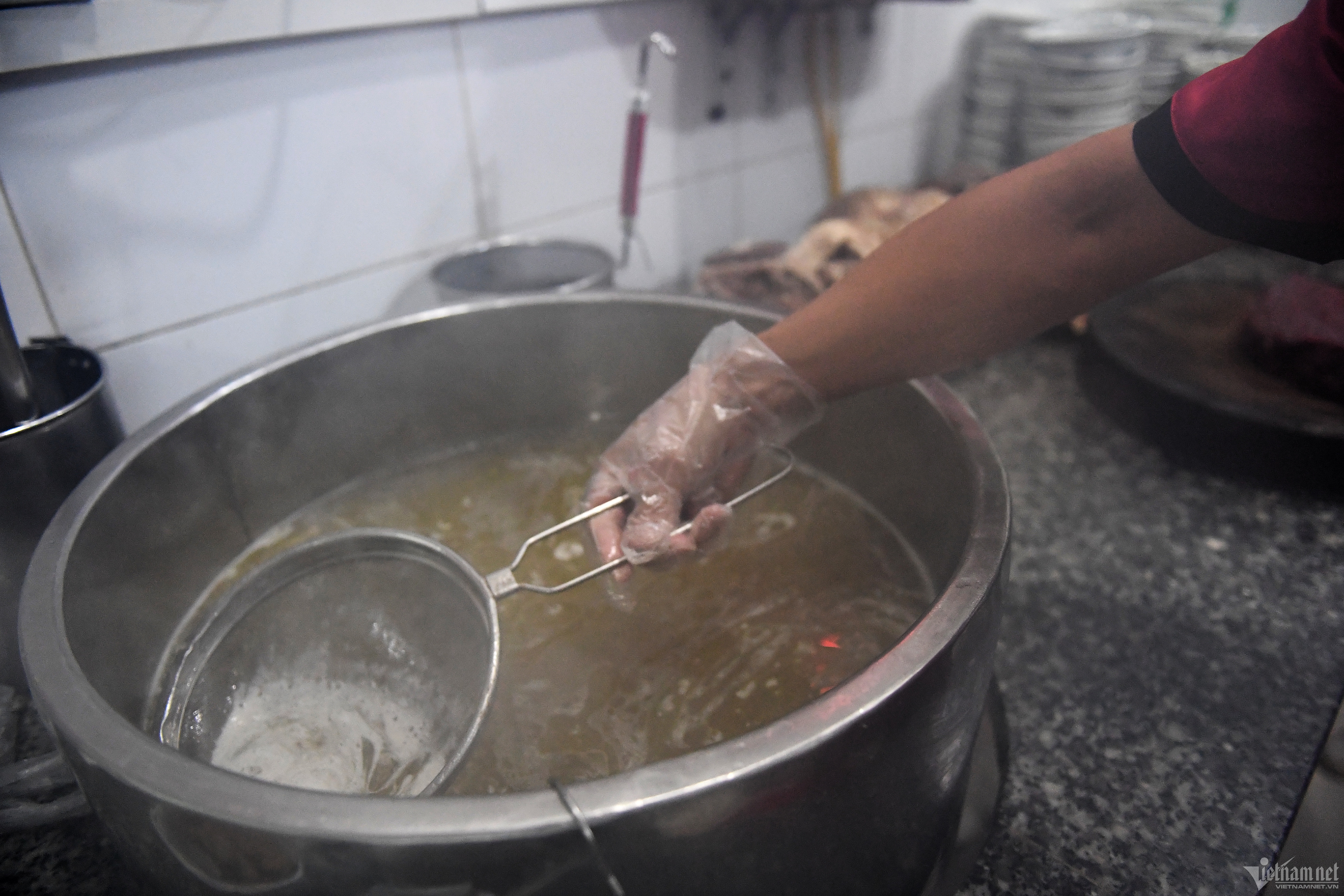 Trong đó, nước dùng là thứ tinh túy nhất của bát phở Nam Định. Các đầu bếp phải thức cả đêm canh, giữ cho nước không bị đục, đảm bảo độ thanh, béo, ngọt mà không bị ngấy.