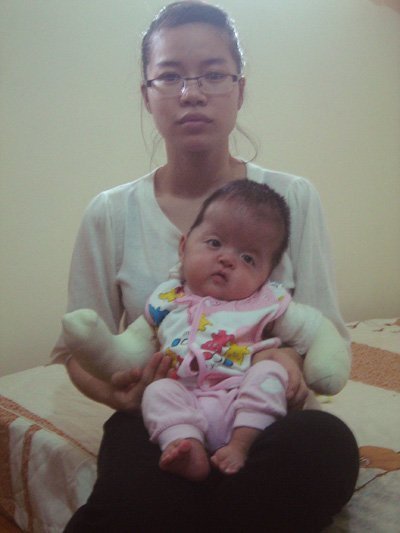 Chị Liên tâm sự: “Khi sinh xong, biết bé bị mắc chứng bệnh Apert, cả gia đình rất lo lắng, đôi lúc không còn hy vọng có thể có điều kiện chữa trị cho bé khi được biết rằng để điều trị bệnh này khá tốn phí. Trong khi hai vợ chồng là công nhân, công việc không ổn định. Hai bên gia đình nội, ngoại đều khó khăn”.