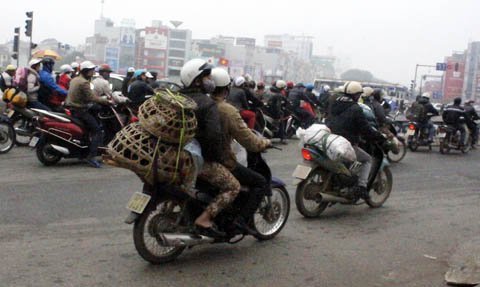 Những gia đình chọn cách đi xe máy về quê