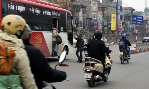 Băng ra giữa đường để lên xe vì không mua được vé...