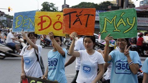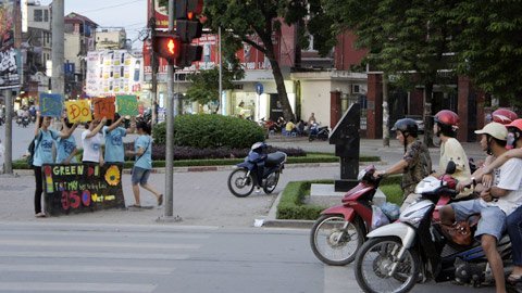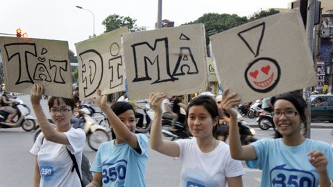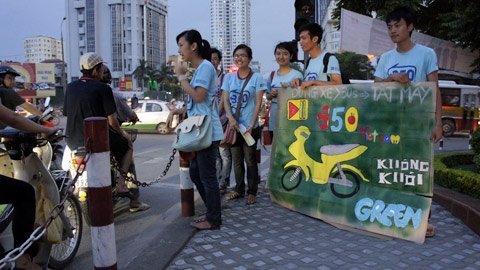 lai", "Tắt máy, không khói"...nhóm bạn trẻ ở Hà Nội đã đưa những khẩu hiệu nói