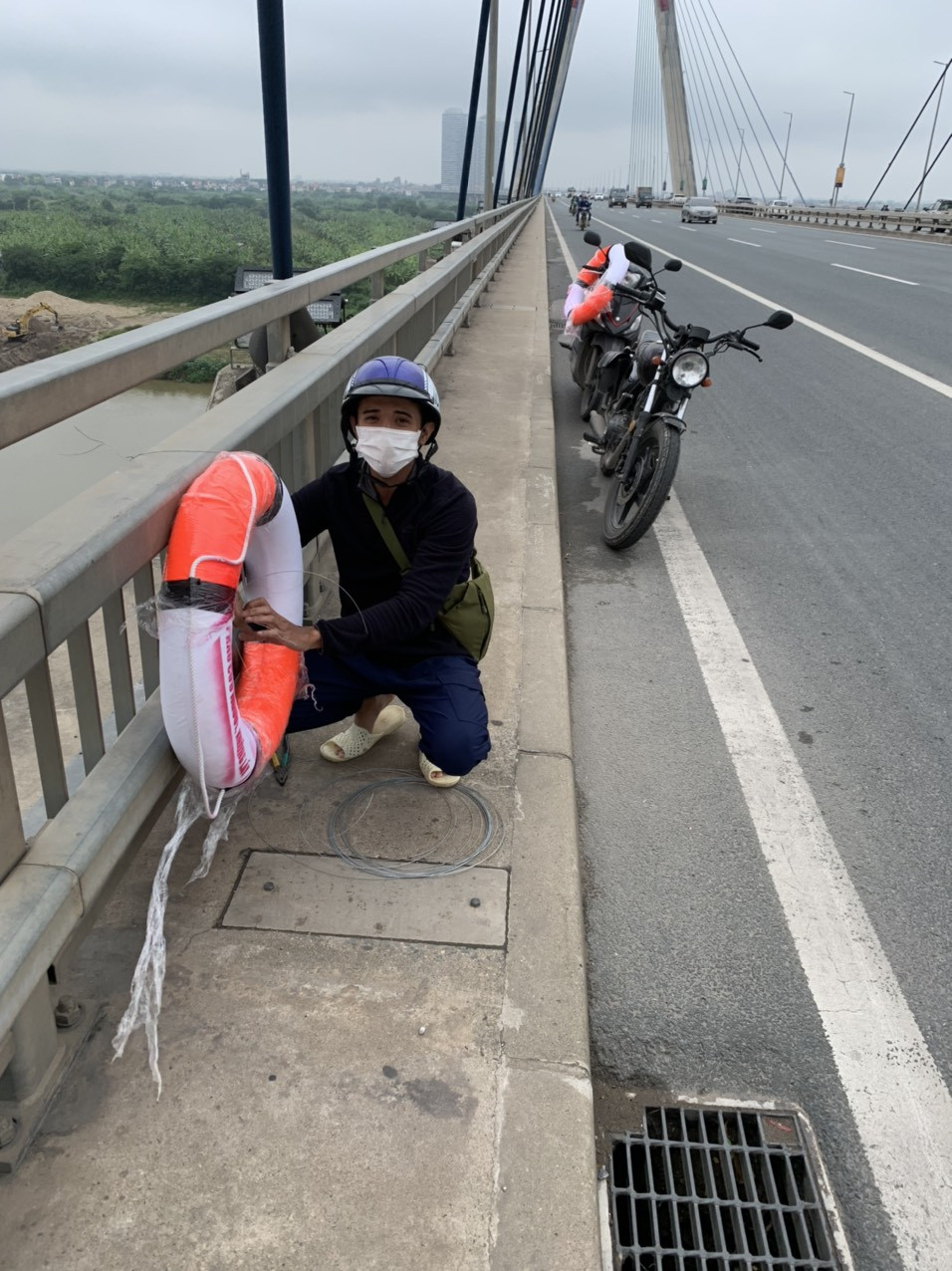 Trong ngày 14/5 vừa qua, các thành viên của nhóm đã chia nhau treo phao bơi ở 6 cây cầu thuộc địa phận Hà Nội, gồm: cầu Thăng Long, Nhật Tân, Long Biên, Chương Dương, Vĩnh Tuy, Thanh Trì.