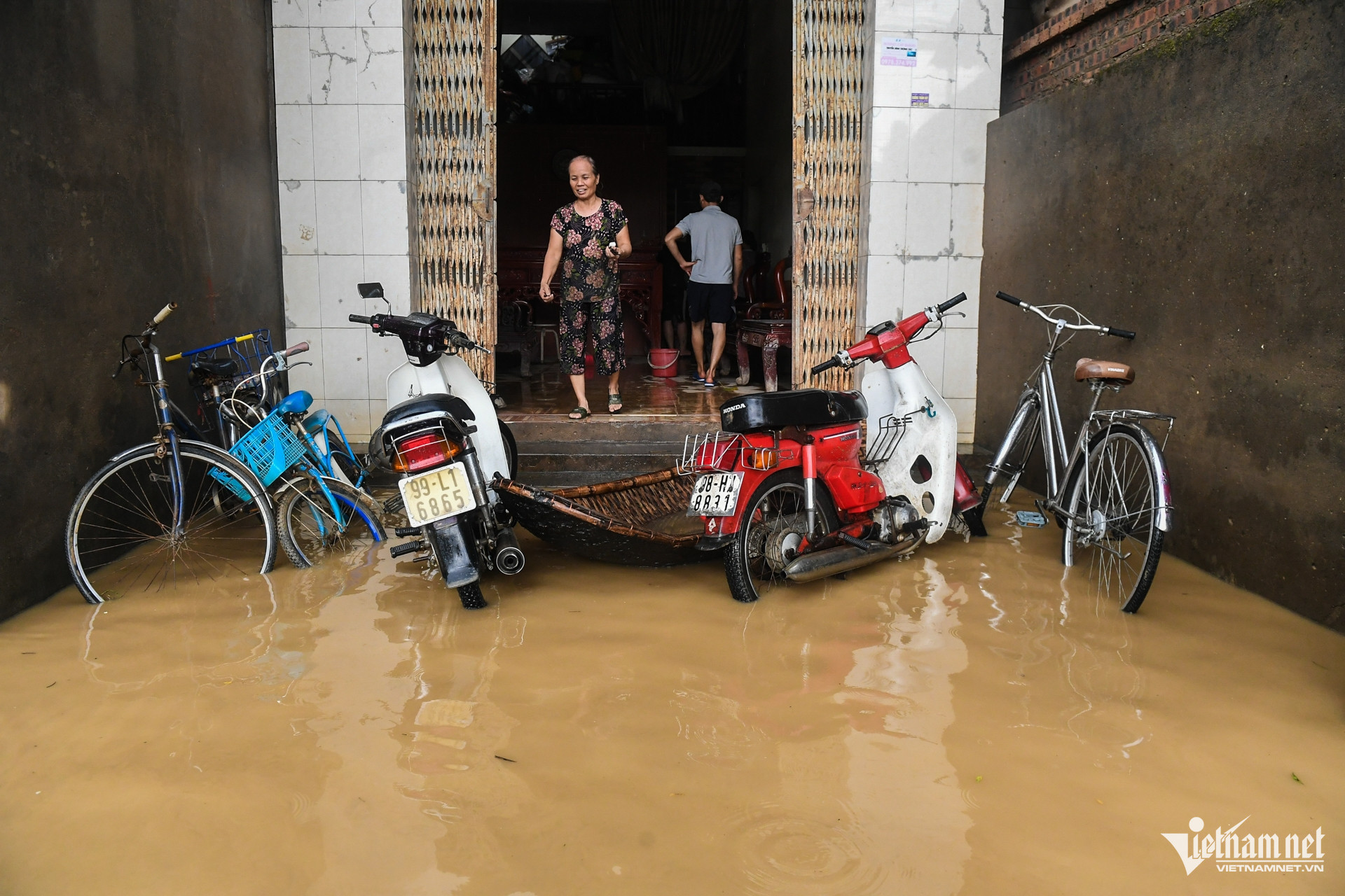 Trưa 13/10, lũ đã rút dần tại các khu dân cư thuộc phường Vân Hà (tỉnh Bắc Ninh) nhưng nhiều nơi người dân vẫn phải lội bì bõm. Trận lụt lịch sử do ảnh hưởng của bão Matmo vừa qua, các xóm làng chìm trong biển nước do địa thế nằm cạnh sông Cầu.
