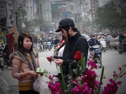 cũng thấy cảnh mua bán quà tặng tình yêu cho ngày Valentine 14/2. Chùm ảnh về