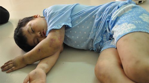 phát hiện trên người cậu con trai 8 tuổi có nhiều vết bầm tím, cộng với biểu