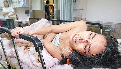 | Hình ảnh lúc nhập viện của nữ diễn viên Đài Loan Hứa Thuần Mỹ vì bị bạn trai đánh cũng gây sốc với công chúng trong năm 2008. |