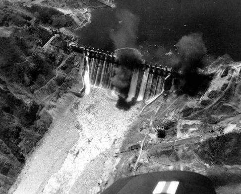 | Ngư lôi từ tàu USS Princeton của Mỹ phóng ngư lôi tấn công hồ trữ nước Hwanchon ngày 1/5/1951 |