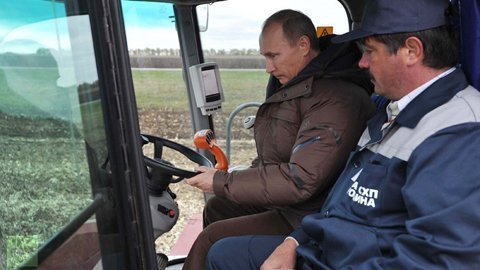 Vladimir Putin lái máy thu hoạch trong một nông trại ở quận Shpakovsky hồi năm 2011.