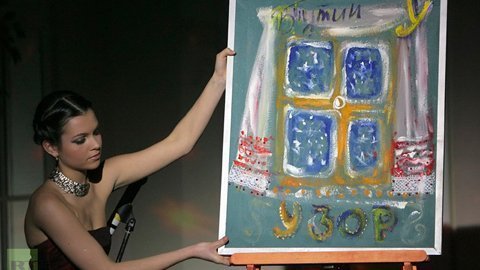 Bức họa "Trang trí" của ông Putin (khi làm Thủ tướng) được bán với giá 37 triệu rúp trong buổi đấu giá từ thiện tại St. Petersburg, năm 2009.