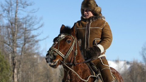 Vladimir Putin tham gia đua ngựa tại vùng Karatash, gần thị trấn Abakan trong suốt chuyến thăm tới Khakassia, tháng 2/2010.