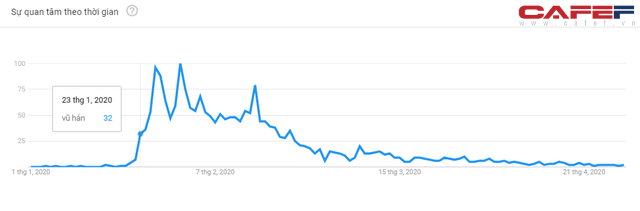 Lượng tìm kiếm từ khóa "Vũ Hán" cũng bắt đầu tăng mạnh từ ngày 23/1 nhưng đến ngày 15/2 thì có xu hướng giảm mạnh.