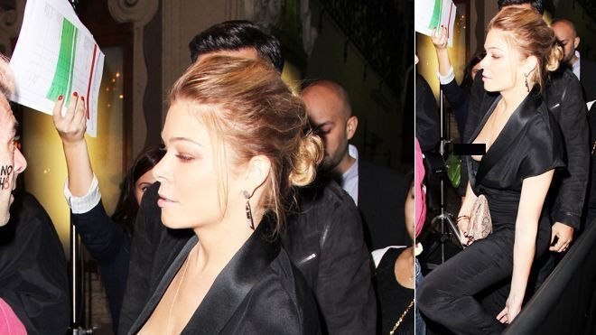 Cựu ngôi sao của Disney đã mặc một chiếc váy quá nhỏ so với bộ ngực "khủng" của mình nên vô tình bị lộ "nhũ hoa".
