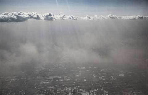 Cát vẩn đục bầu trời ở Bắc Kinh, Trung Quốc, hôm 17/4 khi các trận bão cát tấn công khu vực này lần thứ 3 trong năm. (Ảnh: Getty)