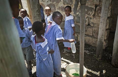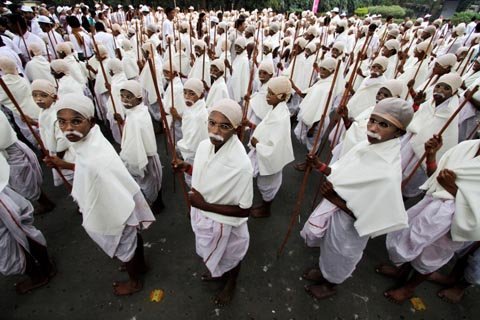 Ngày 29 tháng 1, hằng trăm em nhỏ tại thành phố Kolkata, phía đông Ấn Độ đã mặc đồ giống như Mohandas Gandhi để kỷ niệm 64 năm ngày mất của vị anh hùng dân tộc này. (Ảnh: AP)