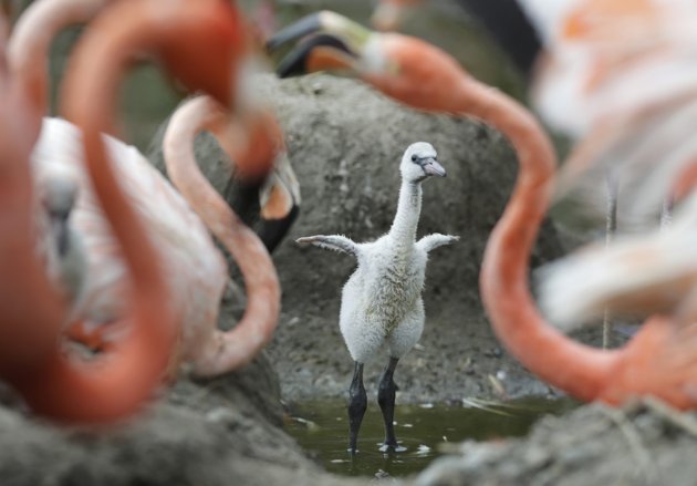 Một chú chim non đang cố gắng vươn đôi cánh bé xíu giữa công viên Stone ở Stoneham, Massachusetts, Mỹ. (Ảnh: AP)
