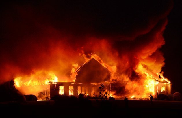 Một ngôi nhà bị sét đánh trúng và bốc cháy dữ dội ở Frederick, Maryland, Mỹ. (Ảnh: AP)