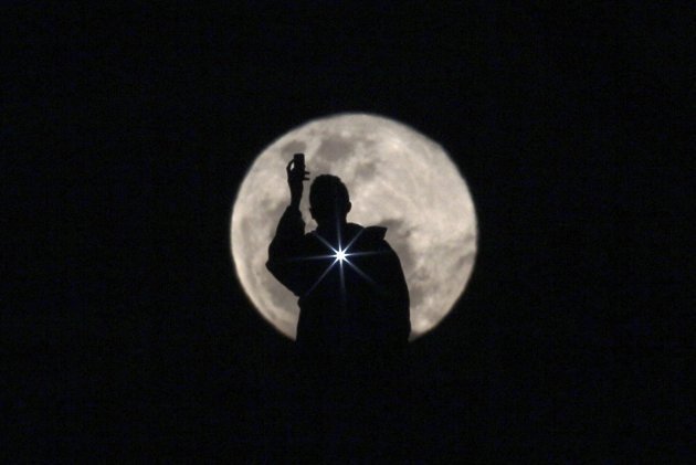 Một người đàn ông đang cố chụp hình ảnh trăng tròn ở Brasil. (Ảnh: Reuters)