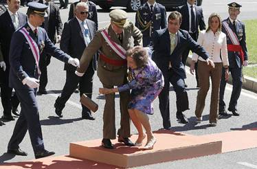 2. Hoàng hậu Sofia (Tây Ban Nha) ngã khi vẫy tay chào các binh sĩ