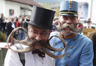 Ngày 2/1/2010, ông Burkhardt (trái) đến từ Đức và ông Franz đến từ Áo cùng tới tham dự cuộc thi vô địch râu châu Âu được tổ chức gần Salzburg (Áo). 150 thí sinh tới từ 17 quốc gia tham gia thi đấu ở các hạng mục như bộ râu hấp dẫn nhất, bộ râu hài hước nhất và bộ râu quái dị nhất.