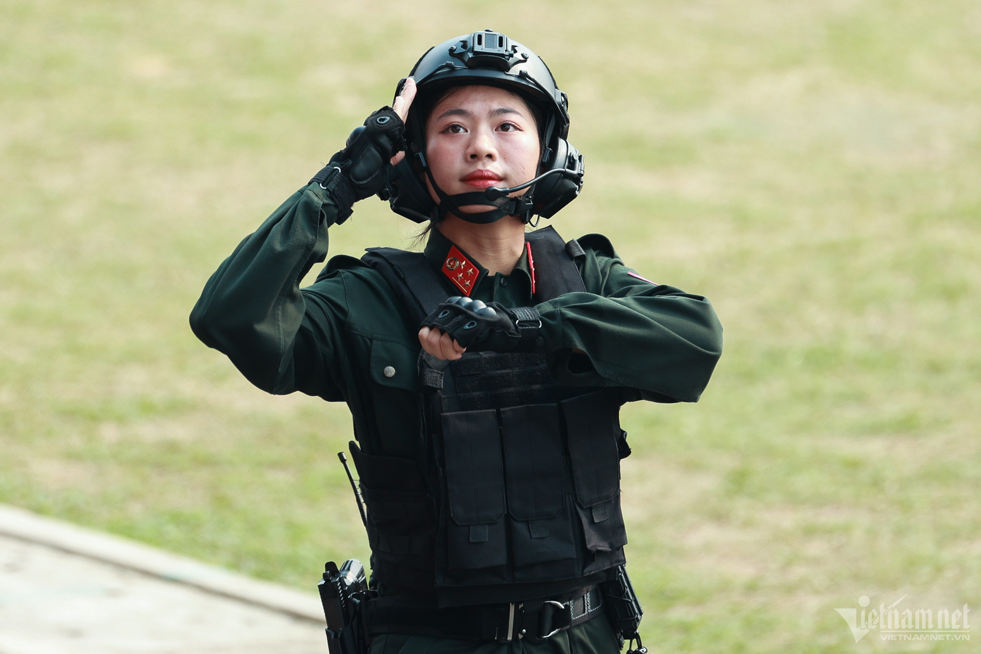 Cô sinh viên năm thứ nhất của Học viện Cảnh sát nhân dân vinh dự và xúc động khi trở thành Khối trưởng Khối nữ Cảnh sát cơ động trong hàng ngũ diễu binh chào mừng Lễ kỷ niệm 70 năm chiến thắng Điện Biên Phủ.. Ảnh: Thạch Thảo.