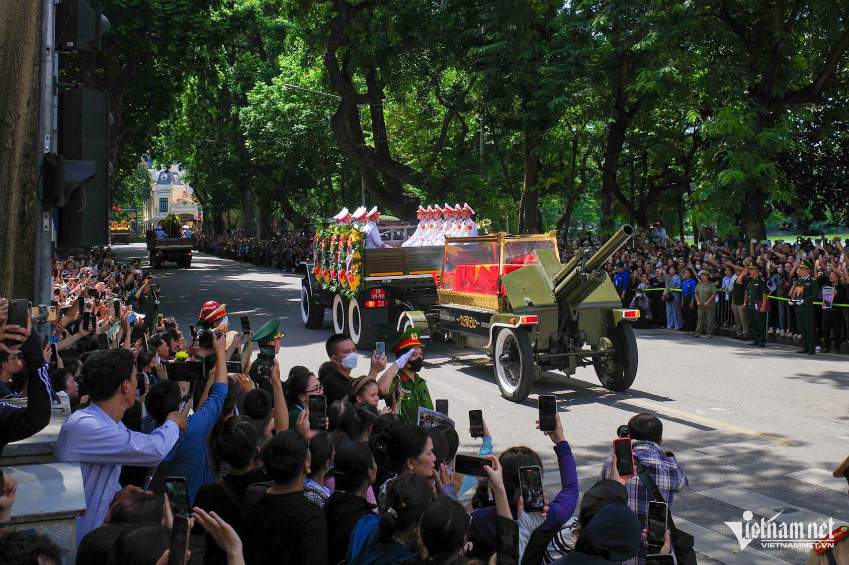 Sáng 25/7, Lễ viếng Tổng Bí thư Nguyễn Phú Trọng được tổ chức trọng thể theo nghi thức Quốc tang tại Nhà tang lễ Quốc gia số 5 Trần Thánh Tông, Hà Nội. Khoảnh khắc bà Ngô Thị Mận - phu nhân của Tổng Bí thư và giây phút linh xa đưa ông đi qua nhiều tuyến phố khiến nhiều người xúc động. Ảnh: Phạm Hải - Thạch Thảo - Khánh Linh.