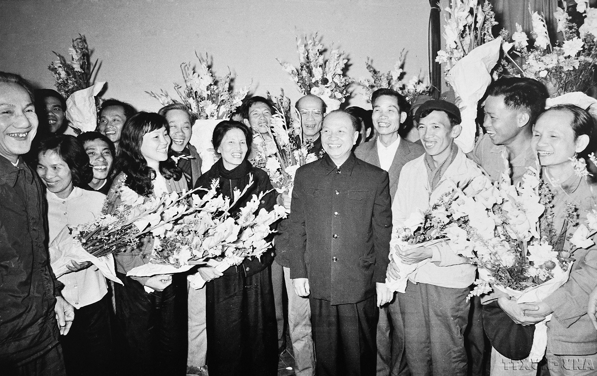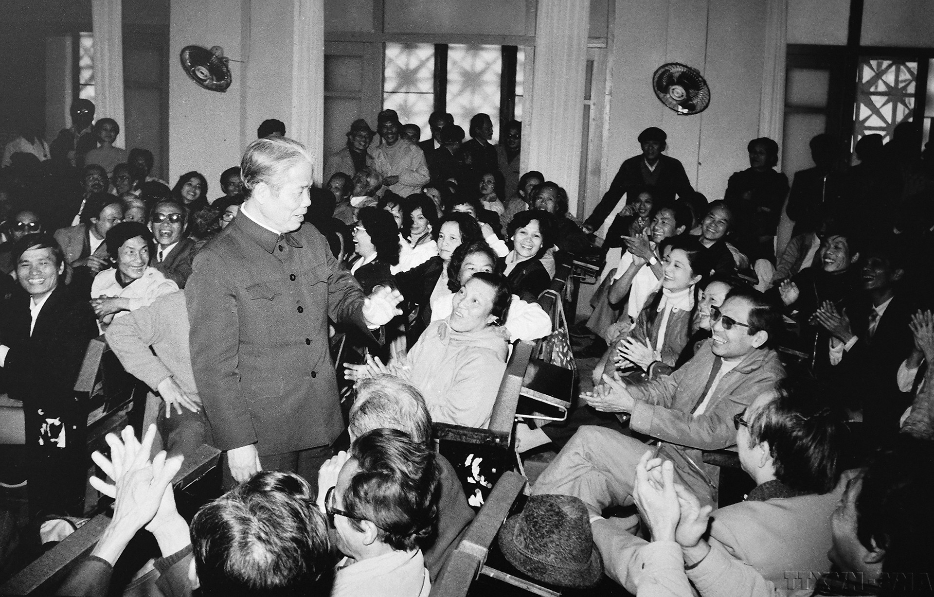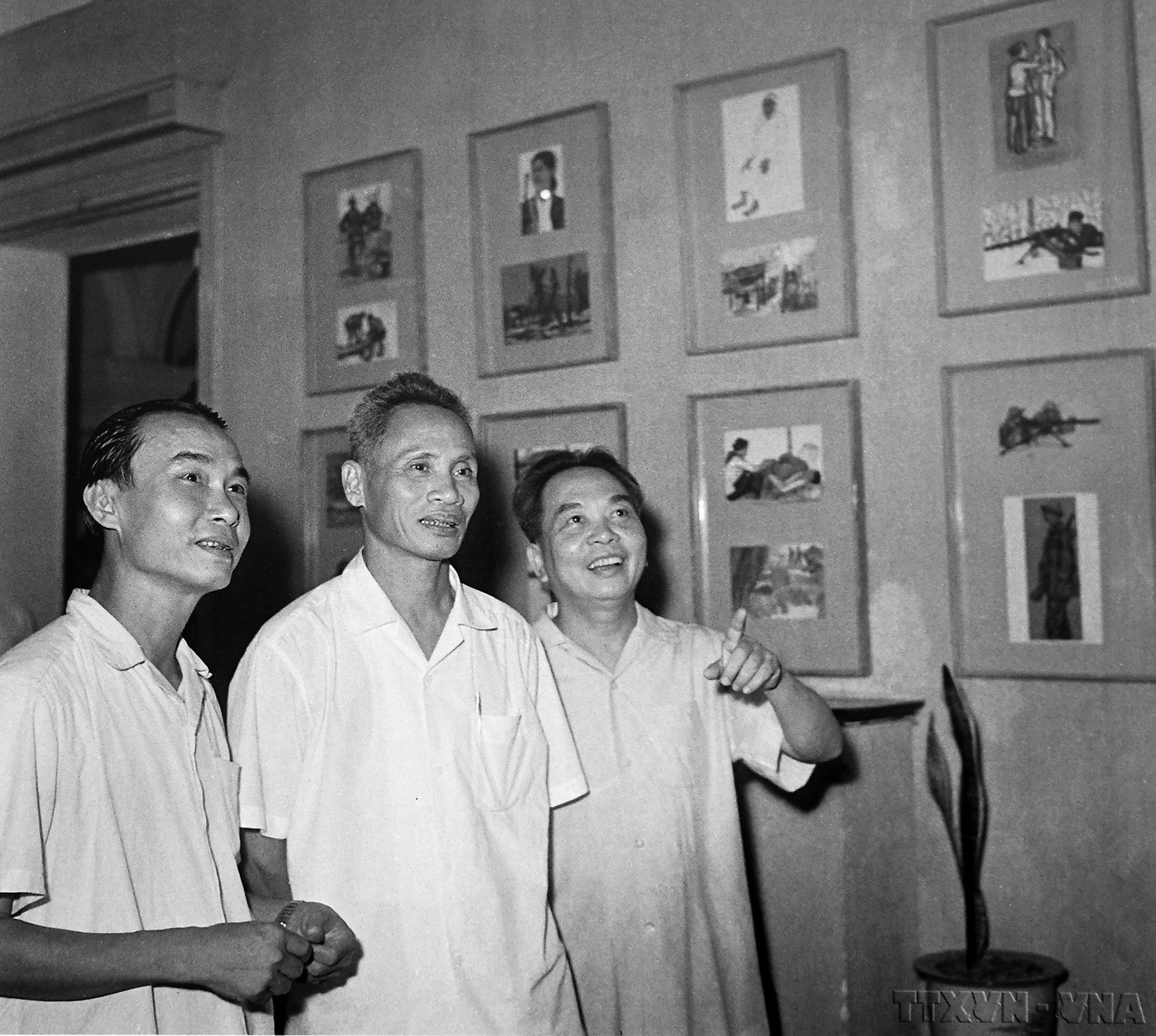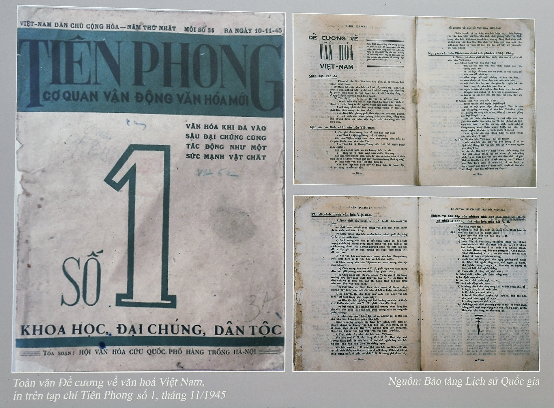 Toàn văn Đề cương về văn hóa Việt Nam in trên tạp chí Tiên Phong số 1, tháng 11/1945.Chủ tịch Hồ Chí Minh thăm Bảo tàng Lịch sử Việt Nam, năm 1959.Chủ tịch Hồ Chí Minh thăm Hội chợ tiểu thủ công, năm 1958.Chủ tịch Hồ Chí Minh nói chuyện với học sinh trường Nghệ thuật Sân khấu Trung ương ở khu văn công Mai Dịch, Hà Nội, tháng 11/1961. Nguồn: Bảo tàng Hồ Chí Minh.Chủ tịch Hồ Chí Minh thổi khèn do nhân dân Châu Yên tặng nhân lễ kỷ niệm Chiến thắng Điện Biên (1954-1959).Đồng chí Trường Chinh tới dự Buổi gặp mặt kỷ niệm lần thứ 20 ngày thành lập ngành Điện ảnh Việt Nam, năm 1973.Đồng chí Trường Chinh tặng hoa cho đơn vị đoạt giải Bông Sen Vàng tại Liên hoan phim lần thứ 2, năm 1973.Thủ tướng Phạm Văn Đồng và Đại tướng Võ Nguyên Giáp xem triển lãm văn nghệ từ miền Nam gửi ra, năm 1968.Đồng chí Lê Duẩn xem phòng trưng bày nghệ thuật dân gian tại Bảo tàng Mỹ thuật Việt Nam, năm 1972.Đồng chí Đỗ Mười dự Đại hội Điện ảnh toàn quốc lần thứ 3, năm 1989.Đồng chí Nguyễn Văn Linh xem triển lãm thủ công mỹ nghệ toàn quốc lần thứ 2, năm 1987 tại Triển lãm Giảng Võ.Các đại biểu dự Hội nghị Văn hóa toàn quốc lần thứ nhất, tháng 11/1946.