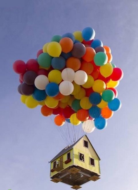 Một nhóm các nhà khoa học tại National Geographic đã tái hiện lại cảnh ngôi nhà được bay lên không trung bởi 300 quả bóng bay. Ngỡ như 1 cảnh trong phim hoạt hình “Up” nổi tiếng.