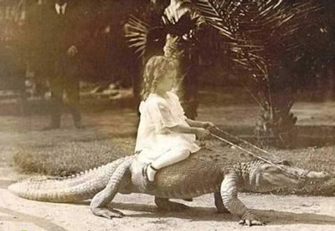 Bức ảnh được chụp từ những năm 1920 với đề tựa: “Doreen (tên cô bé) đang cưỡi 1 con cá sấu”.