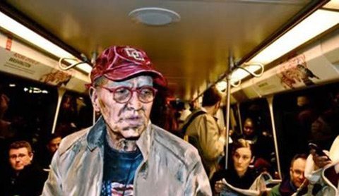 Hình ảnh ông Alexa Meade trông giống như 1 bức tranh sơn dầu.