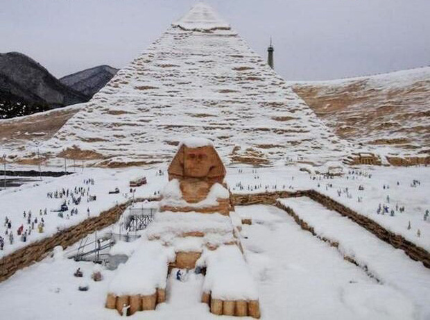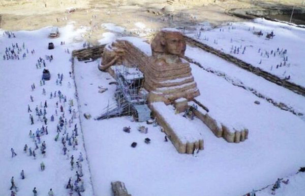 8. Lần đầu tiên tuyết trắng phủ đầy tượng Nhân sư ở Cairo, Ai Cập