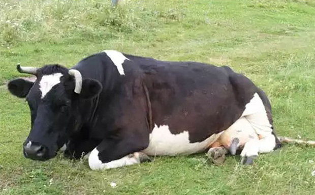4. Con bò nằm yên trên chiếc ô tô của nhãn hiệu BMW