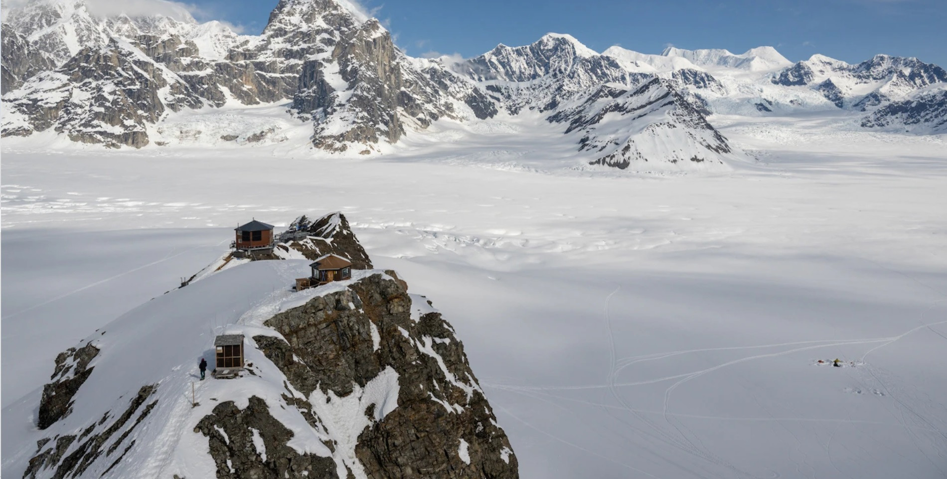 Du khách chỉ có thể đến khu nhà gỗ Sheldon này bằng máy bay trực thăng vì chúng nằm ở độ cao 1.773 m trên hẻm núi lớn của sông băng Ruth — một vực thẳm trong vườn quốc gia và khu bảo tồn Denali của Alaska sâu hơn Grand Canyon.