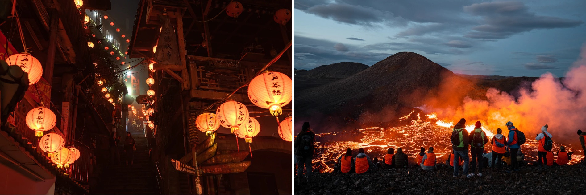 Những con hẻm của Juifen, một ngôi làng miền núi ven biển cách thủ đô Đài Bắc của Đài Loan 90 phút, trở nên vô cùng sống động trong ánh đèn lồng rực rỡ.