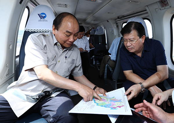 | Chiều 26/9/2017, Thủ tướng Nguyễn Xuân Phúc đi thị sát các khu vực bị ảnh hưởng và tác động bởi biến đổi khí hậu thuộc vùng Đồng bằng sông Cửu Long. Ảnh: Thống Nhất – TTXVN |
