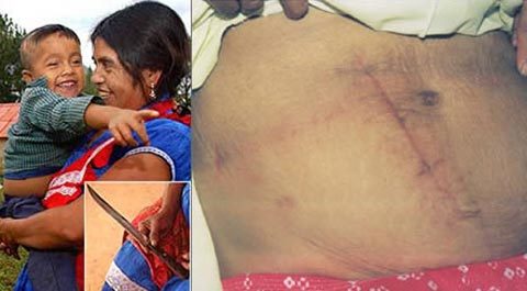 Vì vậy, đến nửa đêm, sau 12 giờ đau chuyển dạ liên tục, người phụ nữ bé nhỏ, 40 tuổi, mẹ của 6 đứa con, đã ngồi xuống một băng ghế gỗ thấp. Cô nhấp nhiều ngụm rượu, cầm một con dao dài 15cm và bắt đầu rạch. Trong ánh sáng mờ mờ, Ramirez cắt xuyên qua da, lớp mỡ và cơ trước khi vào bên trong tử cung của cô và lôi ra đứa con trai. Cô kể đã dùng kéo cắt dây rốn cho con trai, rồi ngất xỉu. Khi tỉnh lại, Ramirez dùng một chiếc áo len bọc quanh phần bụng đang chảy máu của mình và gọi đứa con trai trai 6 tuổi - Benito - chạy tới hỗ trợ. Vài giờ sau đó, nhân viên y tế thôn Leon Cruz và một đồng nghiệp phát hiện Ramirez còn tỉnh táo và đang nằm bên cạnh đứa con mới sinh còn sống. Ông Cruz đã khâu vết tự rạch dài 17cm của sản phụ, sau đó cùng đồng nghiệp lái xe chở cô tới trạm xá cách đó 2 giờ đồng hồ.
