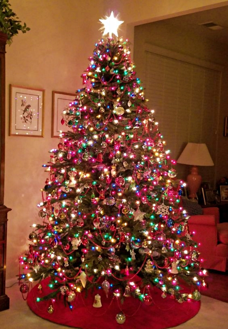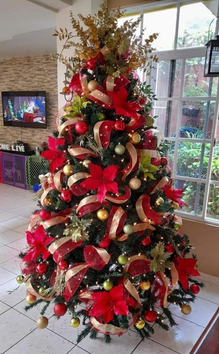 Đây cũng là cách trang trí ít tốn kém nhưng vẫn đầy ấn tượng, đẹp và phù hợp với tất cả mọi người. Các loại dây kim tuyến nhiều màu sắc được quấn quanh tán cây thông xanh sẽ góp phần mang đến không khí vui tươi, ấm áp cho ngày Giáng sinh.