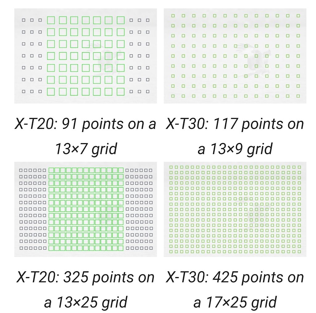 X-T30 có nhiều điểm lấy nét hơn X-T20, điểm lấy nét phủ trên toàn cảm biến. |